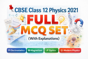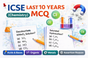 STUDENT’S EXAM PORTAL 📌 Class 10 Chemistry – MCQs with Explanations 📌 Class 10 Chemistry – MCQs with Explanations 1 / 60 Category: Chemistry Class 10 Chemistry 1. Which gas decolourises potassium permanganate (KMnO₄) solution? Sulphur dioxide Ammonia Hydrogen chloride Carbon dioxide Sulphur dioxide is a reducing agent. It reduces purple KMnO₄ to colourless Mn²⁺, causing decolourisation. 2 / 60 Category: Chemistry Class 10 Chemistry 2. Which formula represents a saturated hydrocarbon? C₄H₈ C₅H₁₂ C₄H₆ C₅H₁₀ Saturated hydrocarbons (alkanes) follow the general formula: CnH2n+2 For n = 5 → C₅H₁₂. 3 / 60 Category: Chemistry Class 10 Chemistry 3. The metal whose oxide can be reduced by common reducing agents is — Copper Sodium Aluminium Potassium Copper is less reactive and its oxide can be reduced by carbon or hydrogen. Highly reactive metals cannot. 4 / 60 Category: Chemistry Class 10 Chemistry 4. An organic compound has vapour density 22. The molecular formula of the compound is: (Atomic mass: C = 12, H = 1) CH₄ C₂H₄ C₂H₆ C₃H₈ Molecular mass=2×vapour density=2×22=44 C₂H₆ → (2×12 + 6×1) = 30 ❌C₃H₈ → 44 ✔️ → Correct compound is C₃H₈➡️ Correct answer: (d) C₃H₈ 5 / 60 Category: Chemistry Class 10 Chemistry 5. In the reaction S + 2 H2SO4 → 3SO2 + 2H2O Sulphuric acid acts as — Non-volatile acid Dibasic acid Oxidising agent Reducing agent Sulphuric acid oxidises sulphur to sulphur dioxide. Hence, it acts as an oxidising agent. 6 / 60 Category: Chemistry Class 10 Chemistry 6. Assertion–Reason Assertion (A): The tendency of losing electrons increases down the group.Reason (R): The most reactive metal is placed at the top of Group 1. Both A and R true, R explains A Both A and R true, R does not explain A A true, R false A false, R true Losing electrons increases down the group, but the most reactive alkali metals are at the bottom, not top. Hence Assertion is false. 7 / 60 Category: Chemistry Class 10 Chemistry 7. The ore that can be concentrated by magnetic separation is — Corundum Haematite Calamine Bauxite Haematite (Fe₂O₃) is weakly magnetic and can be separated using magnetic separation. 8 / 60 Category: Chemistry Class 10 Chemistry 8. Which electronic configuration represents correct atoms A and B before forming covalent molecule AB₂? 2,4 and 2,8,6 2,4 and 2,8,7 2,8 and 2,8,8 2,6 and 2,8,7 Carbon-like atom (A) → 4 valence electronsChlorine-like atom (B) → 7 valence electronsSo correct pairing is 2,4 and 2,8,7. 9 / 60 Category: Chemistry Class 10 Chemistry 9. Which set of compounds belongs to the same homologous series? CH₄, C₂H₆, C₃H₈ CH₄, C₂H₆, C₃H₆ C₃H₄, C₃H₆, C₃H₈ C₂H₄, C₃H₆, C₄H₁₀ Homologous series have same functional group and general formula.Alkanes → CₙH₂ₙ₊₂ ✔️ 10 / 60 Category: Chemistry Class 10 Chemistry 10. Assertion–Reason Assertion (A): In the Contact Process, SO₃ is not directly dissolved in water.Reason (R): Dense fog of sulphuric acid is formed which is difficult to condense. (a) Both A and R are true and R explains A (b) Both A and R true but R does not explain A c) A true, R false (d) A false, R true SO₃ reacts violently with water forming acid mist. Hence oleum is used instead. 11 / 60 Category: Chemistry Class 10 Chemistry 11. Given below are four ions: Cl⁻, Li⁺, Al³⁺, K⁺Identify the pair of ions which have the same electronic configuration.[Atomic numbers: Cl = 17, Li = 3, Al = 13, K = 19] Cl⁻ & Li⁺ Al³⁺ & K⁺ Cl⁻ & K⁺ Li⁺ & K⁺ Cl⁻ → 18 electrons K⁺ → 18 electronsSame number of electrons → same electronic configuration. 12 / 60 Category: Chemistry Class 10 Chemistry 12. Which pair of reactants can be best used to produce lead(II) sulphate? (a) Sulphuric acid + Lead (b) Sulphuric acid + Lead hydroxide (c) Sodium sulphate + Lead nitrate (d) Potassium sulphate + Lead oxide Answer: (b) Explanation:Acid + base → salt + waterPb(OH)₂ + H₂SO₄ → PbSO₄ + 2H₂O 13 / 60 Category: Chemistry Class 10 Chemistry 13. Aqueous copper(II) sulphate is electrolysed using copper electrodes. Which statement about the electrolysis is not correct? An oxidation reaction occurs at the positive electrode The current is carried through the electrolyte by ions The positive electrode loses mass The number of copper(II) ions in the electrolyte decreases Answer: (d) Explanation:Cu²⁺ ions lost at cathode are replaced by Cu²⁺ from anode → concentration remains constant 14 / 60 Category: Chemistry Class 10 Chemistry 14. X, Y & Z are three metallic atoms in successive order belonging to the same group such that atomic radius of X is the smallest. Which atom is the best reducing agent? X Y Z All have same reducing power Answer: (c) Explanation:Reducing power increases down the group due to increase in atomic size and ease of losing electrons. 15 / 60 Category: Chemistry Class 10 Chemistry 15. 40 cm³ of methane (CH₄) is reacted with 60 cm³ of oxygen. Reaction:CH₄ + 2O₂ → CO₂ + 2H₂O All volumes measured at room temperature.What is the total volume of gases remaining at the end? 60 cm³ 40 cm³ 45 cm³ 50 cm³ Answer: (b) Explanation:40 cm³ CH₄ needs 80 cm³ O₂, but only 60 cm³ is available → O₂ is limiting.Used CH₄ = 30 cm³Remaining CH₄ = 10 cm³CO₂ formed = 30 cm³Total = 10 + 30 = 40 cm³ 16 / 60 Category: Chemistry Class 10 Chemistry 16. Unsaturated hydrocarbons undergo: Addition reaction Substitution reaction Oxidation reaction Redox reaction Explanation:Unsaturated hydrocarbons (alkenes & alkynes) have double/triple bonds and undergo addition reactions to become saturated. 17 / 60 Category: Chemistry Class 10 Chemistry 17. In the 2nd period Neon has maximum ionization potential because: It has unstable electronic configuration It easily accepts electrons It easily loses electrons The outermost shell is completely filled Explanation:Neon has a